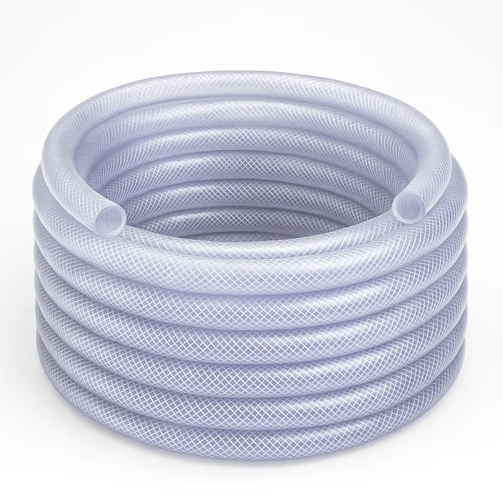 LeafVacuumHose.com’s Hydroseed Hose is made with Fabric Braid Reinforced CLEAR PVC.